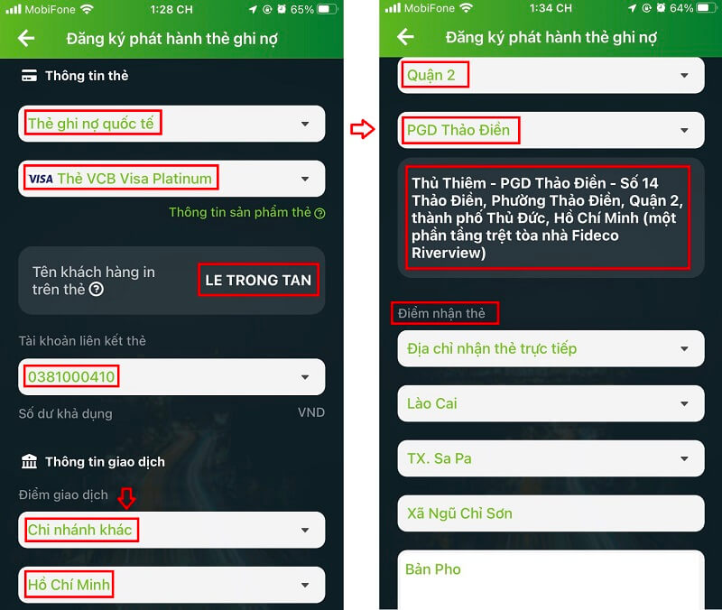 Địa chỉ gửi thẻ: PGD Thảo Điền – Số 14 Thảo Điền, Phường Thảo Điền, Quận 2, TP Thủ Đức, Hồ Chí Minh.