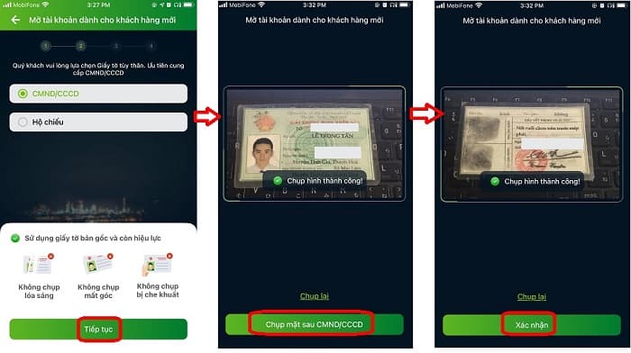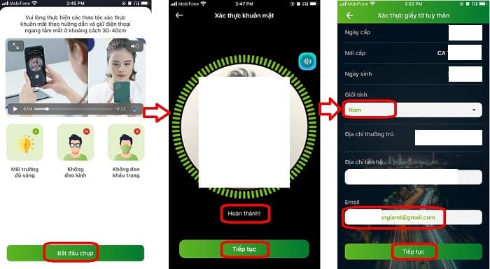 Bước 3: Cung cấp CCCD/Hộ chiếu. Kiểm tra thông tin cá nhân cho chính xác và ấn “Tiếp tục“.