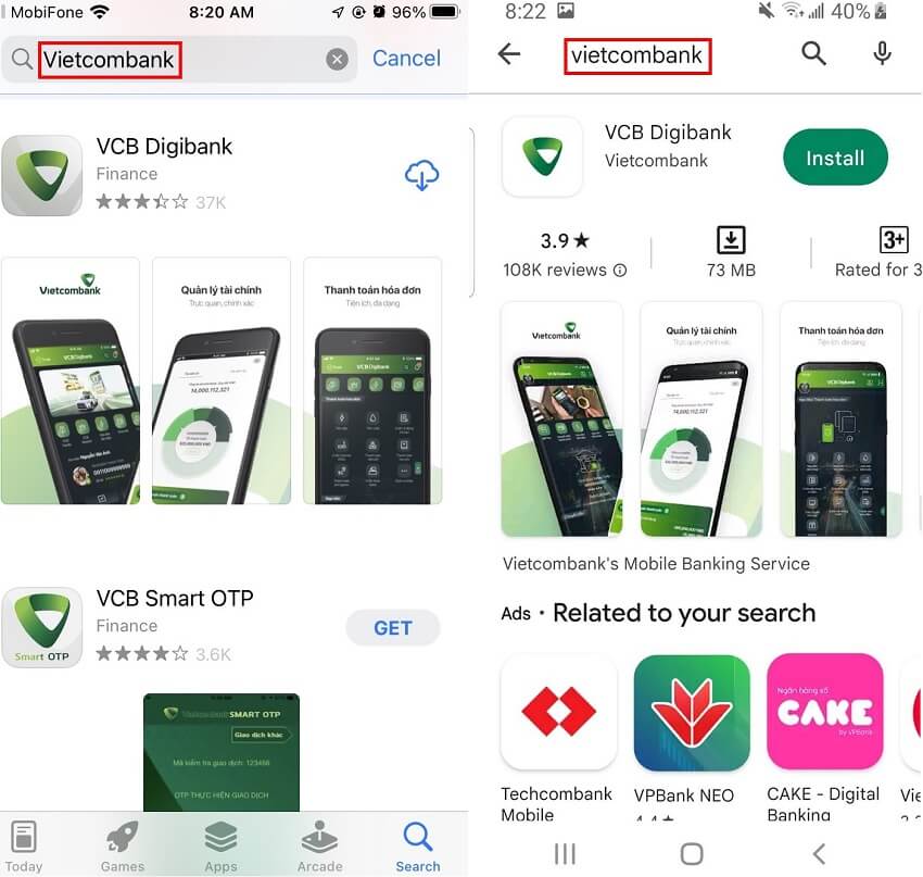 Để sử dụng Dịch vụ VCB Digibank ở nước ngoài khách hàng chỉ cần tải ứng dụng Vietcombank trên Smartphone, và xác thực OTP online.
